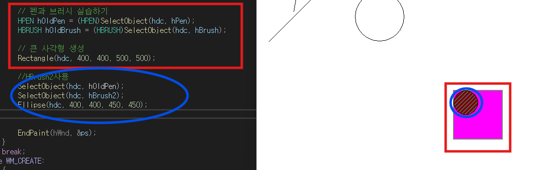 SelectObject(hdc, oldPen);