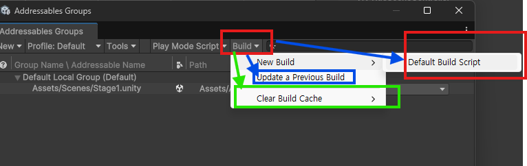 콘텐츠 빌드를 설정 및 수행하는 방법에 대한 자세한 내용은 어드레서블 콘텐츠 빌드를 참조하십시오.
