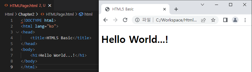 <!DOCTYPE html> <!-- 웹 브라우저에 HTML5문서라는 것을 알려주기