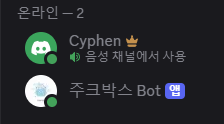 그럼 내가 디스코드를 켤 때 봇이 같이 켜지니까. 내가 쓸때는 항상 온라인이게 된다.
