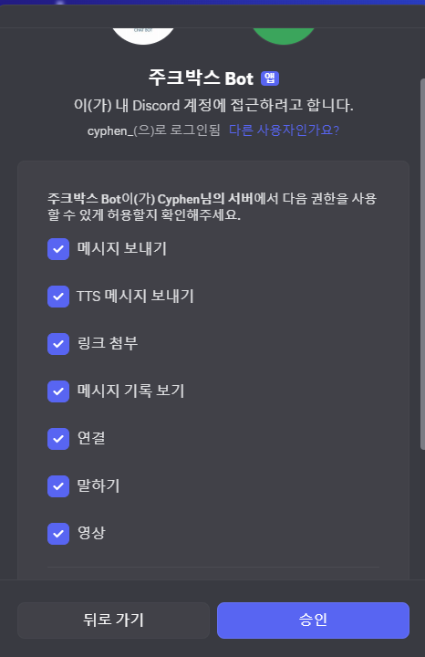 | 디스코드 봇 - 주크박스 만들기 #1 봇 생성하기 (2) | 2025.08.18 |
