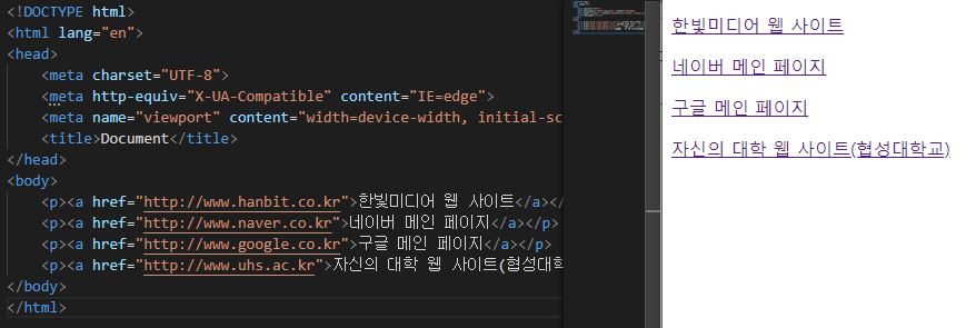 2) source - 클릭하면 다음 링크로 이동하는 a 태그를 작성하시오.