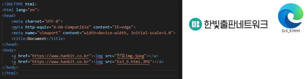 - 다음과 같이 폴더를 구성했을 때, 클릭하면 한빛미디어 웹 사이트로 이동하도록 이미지가 포함된 a 태그를 작성하시오.