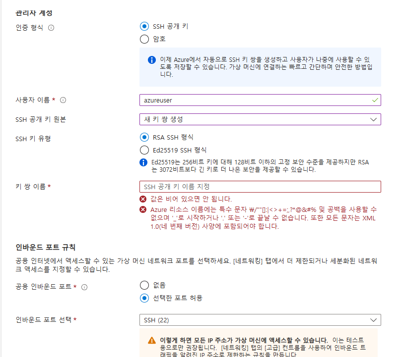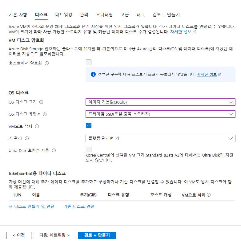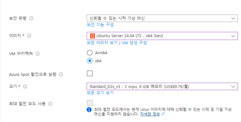 서비스 될 가상환경의 옵션을 선택해야 한다. 보통 B시리즈나 D시리즈를 사용하곤 하는데 요금과 성능을 타협해야 한다.