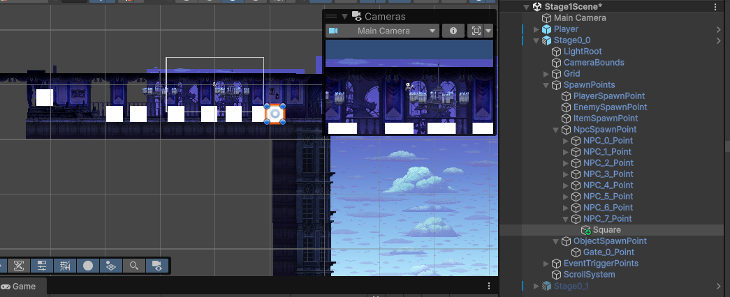 나는 씬을 텅 빈 깡통으로 사용하고 실제 스테이지 구성은 런타임에 동적으로 배치한다.